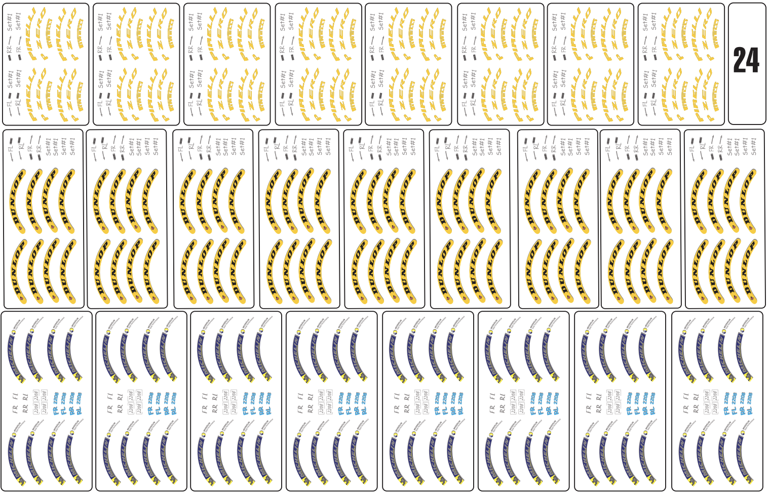 Diverse morderne Reifen marken-Decals für 25 Autos! Scale 1:24.