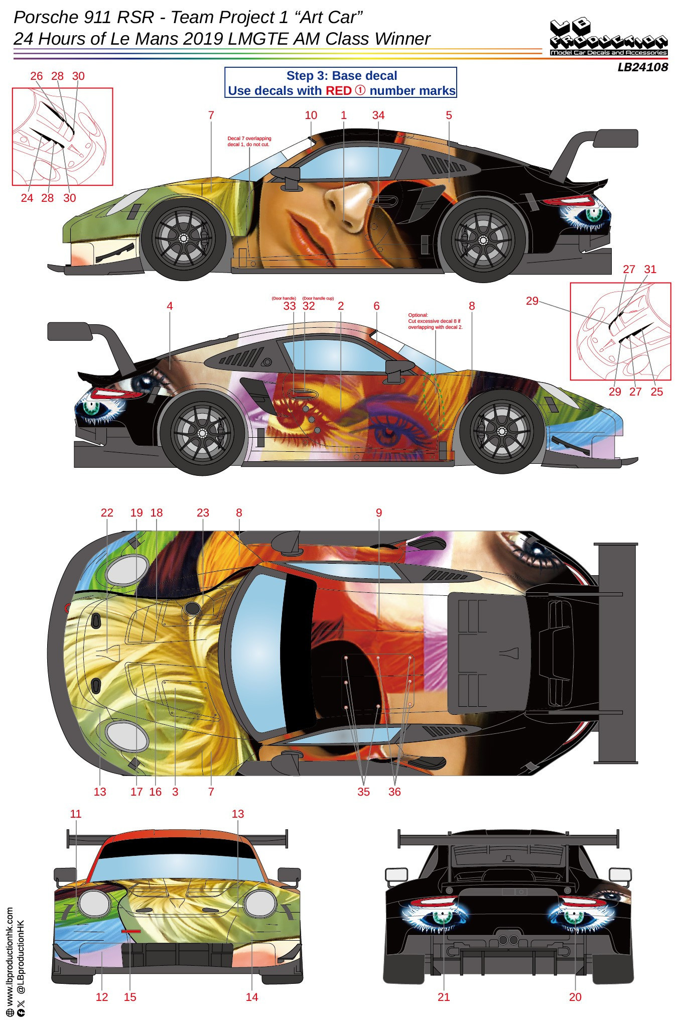 LBProduction 1/24 Porsche 911 RSR - Team Project 1 "Art Car" - 24 Hours of Le Mans 2019 GTE AM Class winner (LB24108)
